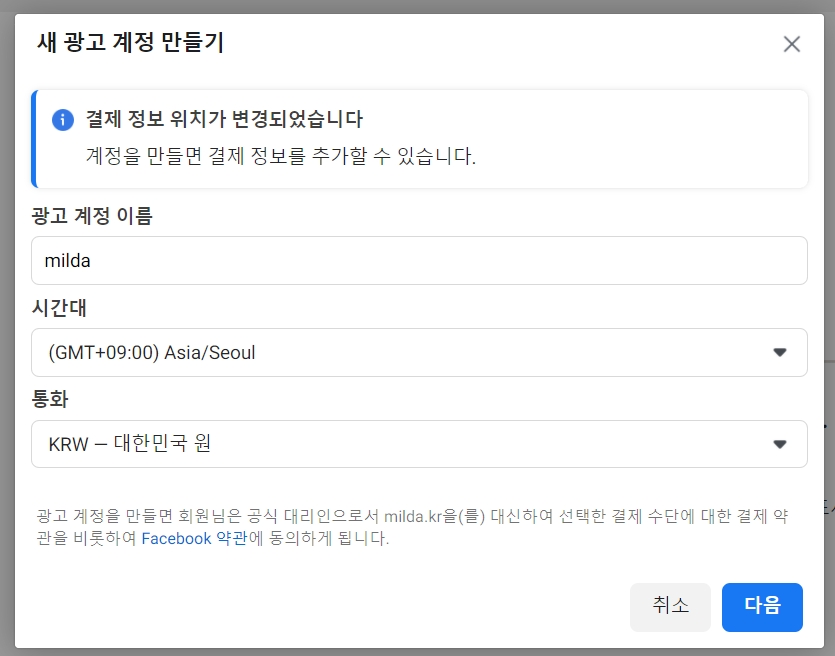 페이스북(메타) 광고계정 생성하기