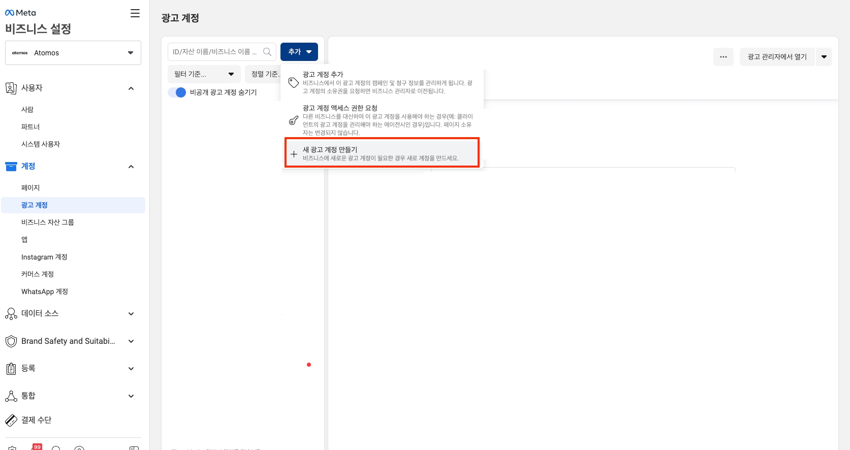 5️⃣ 광고 계정 생성은 아토모스에게 요청!