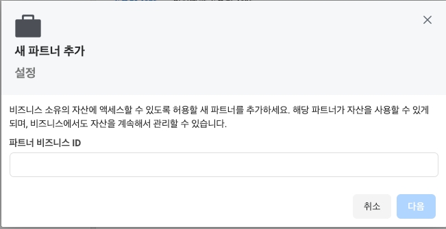 Step 4. 파트너 비즈니스 ID 입력 후 [다음]을 클릭해주세요.